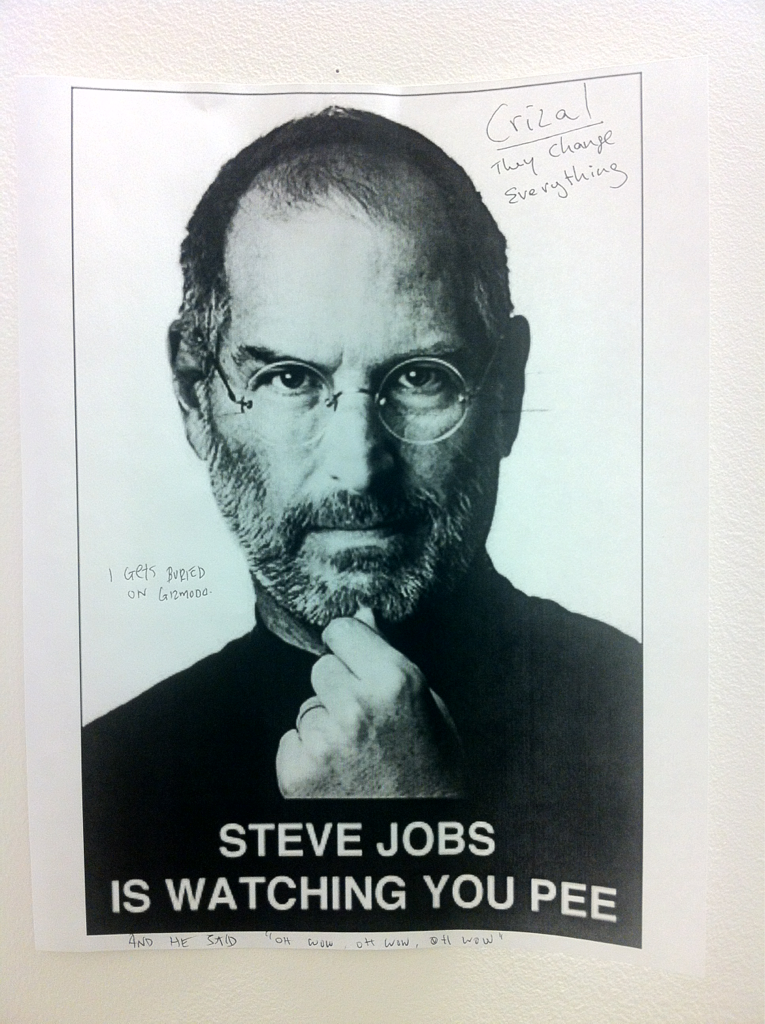 When you go in the men’s room at 7-Eleven, you see, scrawled on the wall, phone numbers with invitations for illicit sexual favors. But at the VCU Brand Center, you see this…..